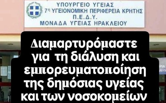Mε αυτό το πλαίσιο και με τα αιτήματα μας για στήριξη του δημόσιου συστήματος υγείας ενάντια στην κυβερνητική πολιτική εμπορευματοποίησης, και συρρίκνωσης του ΕΣΥ αποφασίζουμε να συνεχίσουμε τις κινητοποιήσεις και να προχωρήσουμε σε παράσταση διαμαρτυρίας στην 7η ΥΠΕ στο Ηράκλειο την Πέμπτη 6/2/25 στις 12.30 μμ.