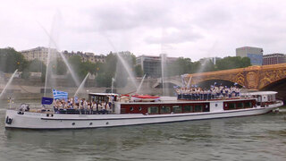 Από τη γέφυρα Οστερλίτς, γύρω στα 100 πλοιάρια είχαν αναλάβει να μεταφέρουν στον Σηκουάνα τους περίπου 7.000 αθλητές και αθλήτριες από τις 206 αποστολές που συμμετείχαν στην τελετή. Τα πλοιάρια, οι μύγες όπως τα λένε στο Παρίσι (που ενισχύθηκαν και μερικά από το Στρασβούργο), ήταν μια από τις πιο ωραίες εικόνες της τελετής.
