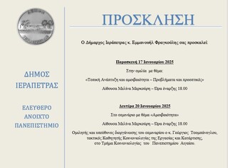 Ο Δήμαρχος Ιεράπετρας κ. Εμμανουήλ Φραγκούλης σας προσκαλεί: