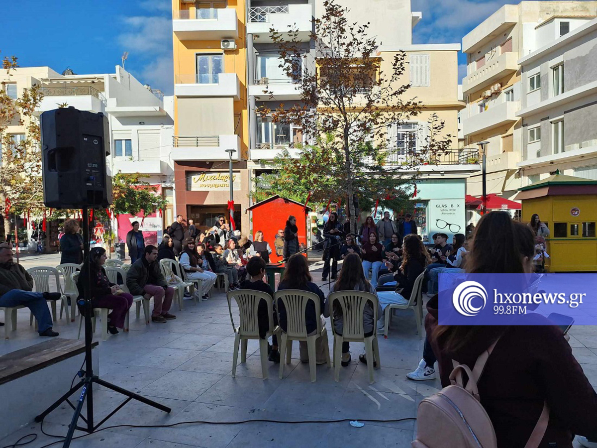 «Δεν φτάνει μία μέρα αλλά την χρησιμοποιούμε πάντα για να γίνονται ωραία πράγματα και συνεργασίες», ανέφερε η κα Χαΐτα η οποία μας ενημέρωσε ότι η σημερινή δράση γίνεται σε συνεργασία με το ΚΔΑΠ-ΜΕΑ και τον Σύλλογο Ατόμων με Αναπηρίες Ιεράπετρας "Γεώργιος Σουργιαδάκης". Αυτό που θα δούμε σήμερα στην πλατεία είναι το μουσικό σύνολο του σχολείου το οποίο δουλεύει από πέρυσι και θα παρουσιάσει το «Body percussion» το οποίο ουσιαστικά είναι η δημιουργία μουσικής με το σώμα. Πέρυσι, είχαν κάνει παρουσίαση και στο Σταύρος Νιάρχος, έλαβαν μέρος στην τελετή λήξης του Φεστιβάλ Θεάτρου και προγραμματίζουν να λάβουν μέρος και στην Χριστουγεννιάτικη εκδήλωση του σχολείου καθώς και σε μία παρουσίαση της Περιφέρειας. Πρόκειται λοιπόν για ένα πολύ δραστήριο μουσικό σύνολο.
