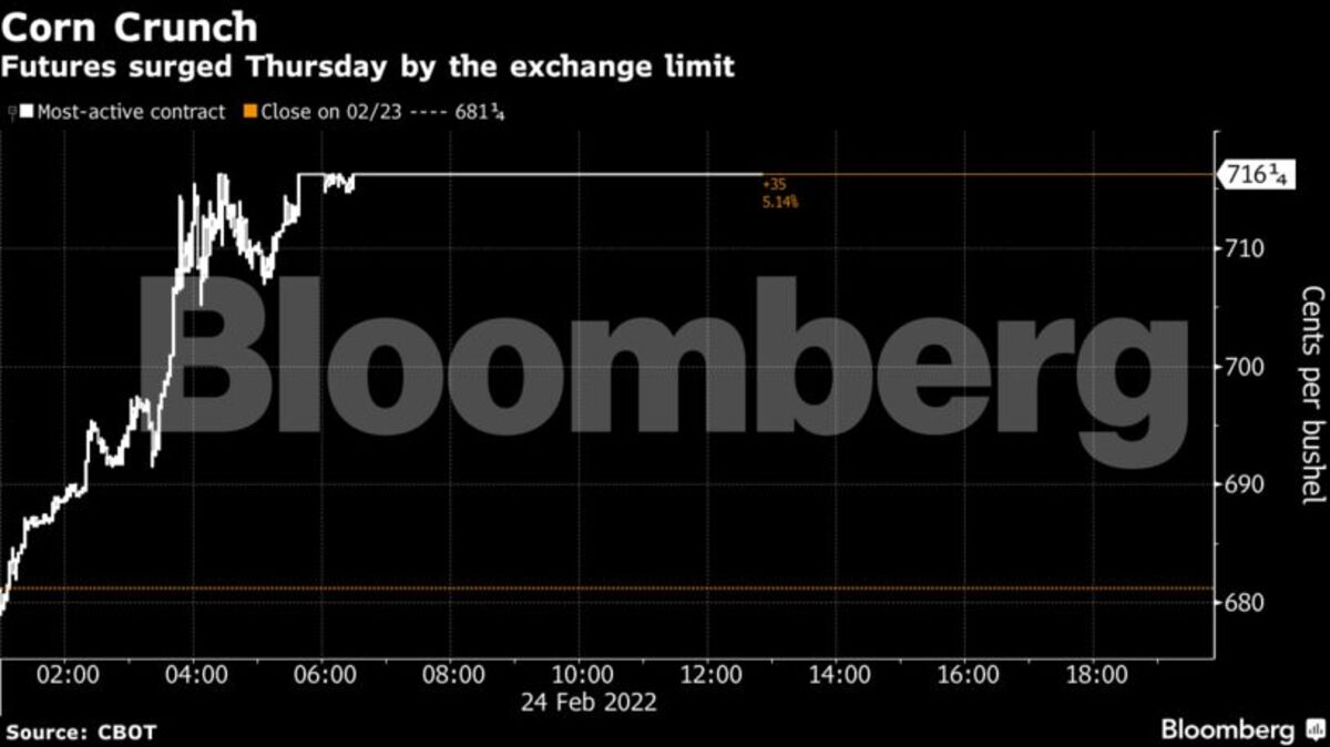 Τα ΣΜΕ σίτου και καλαμποκιού στο Σικάγο άγγιξαν την υψηλότερη επιτρεπόμενη intraday τιμή. Ο σίτος άλεσης στο Παρίσι κατέγραψε αύξηση της τάξης του 16%, αυξάνοντας τις ανησυχίες για παγκόσμια κρίση τροφίμων. Η Αίγυπτος αναγκάστηκε να ακυρώσει την τελευταία παραγγελία σίτου της από τα χωράφια της Μαύρης Θάλασσας λόγω της εισβολής.