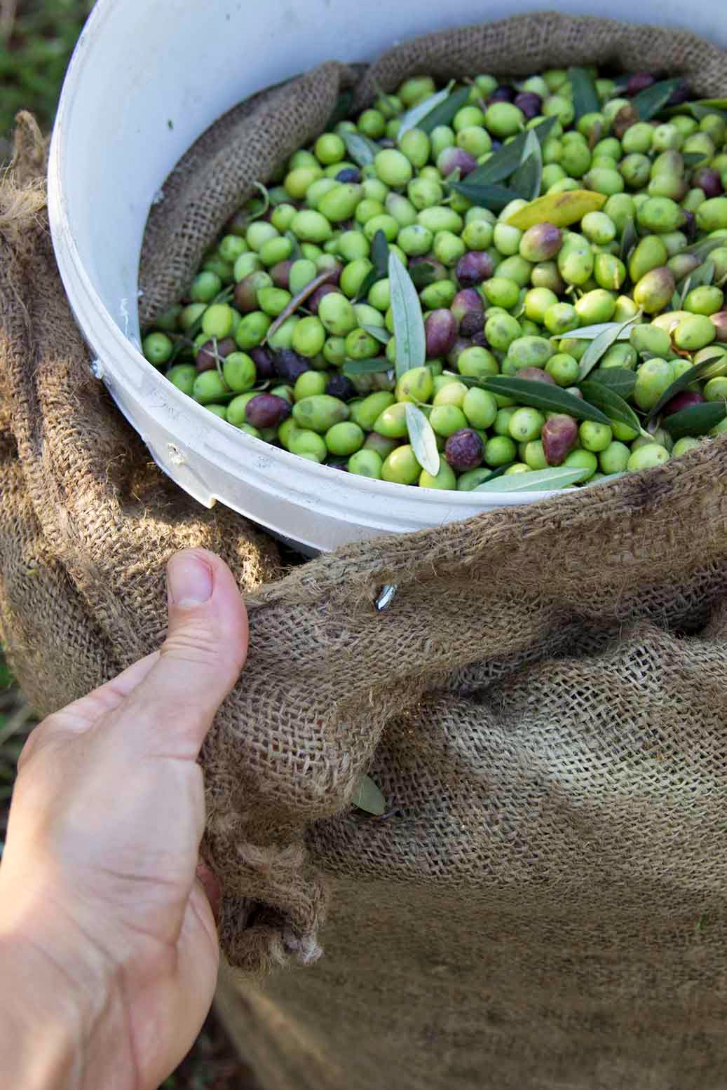 και σπρώχνουμε αρχικά τον καρπό με δύναμη να πάει προς τον πάτο του σακιού, για να γλυτώσουμε αργότερα τα πολλά ανέβα-κατέβα του σακιού.
