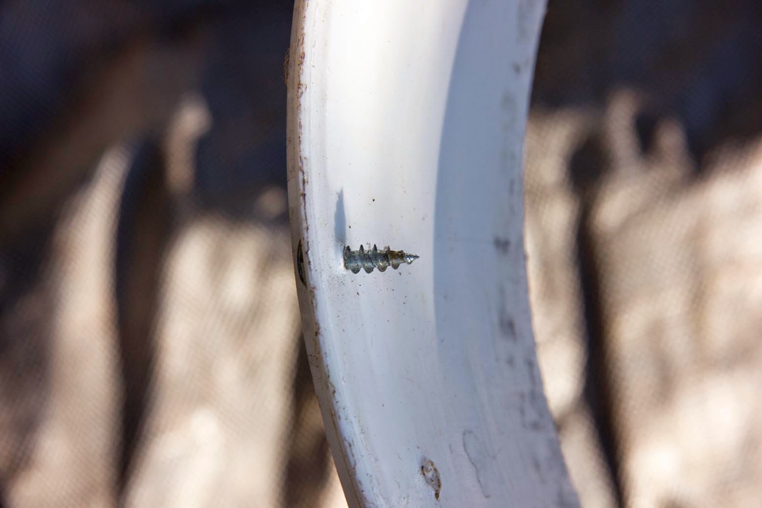 τοποθετούμε δυο τρυπανόβιδες (είναι καλύτερα από τις απλές βίδες ) στην άκρη του πλαστικού που κόψαμε σε απόσταση 10-15 εκ.η μια από την άλλη,