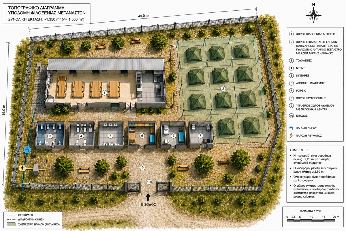 Σχέδιο για προσωρινή δομή άμεσης διαχείρισης έως 60 ατόμων με στόχο ανθρώπινες συνθήκες, ταχύτητα και αποσυμφόρηση των παραλιακών περιοχών