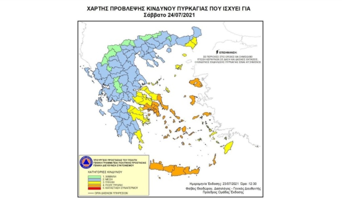 Σύμφωνα με το Χάρτη Πρόβλεψης Κινδύνου Πυρκαγιάς που εκδίδει η Γενική Γραμματεία Πολιτικής Προστασίας