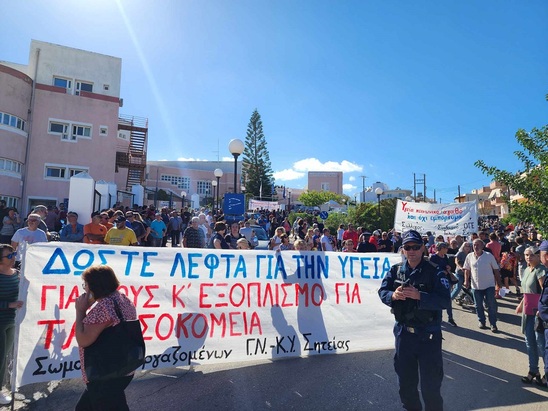 Οι κάτοικοι τον υποδέχθηκαν με συνθήματα αποδοκιμασίας ενώ κάποιοι διαμαρτυρόμενοι μπήκαν στον αύλειο χώρο του νοσοκομείου, φωνάζοντας συνθήματα, διεκδικώντας δημόσια δωρεάν υγεία.