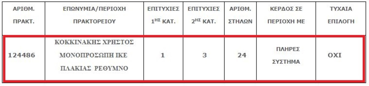 Το υπερτυχερό δελτίο παίχτηκε στο πρακτορείο του Χρήστου Κοκκινάκη στον Πλακιά Ρεθύμνου.