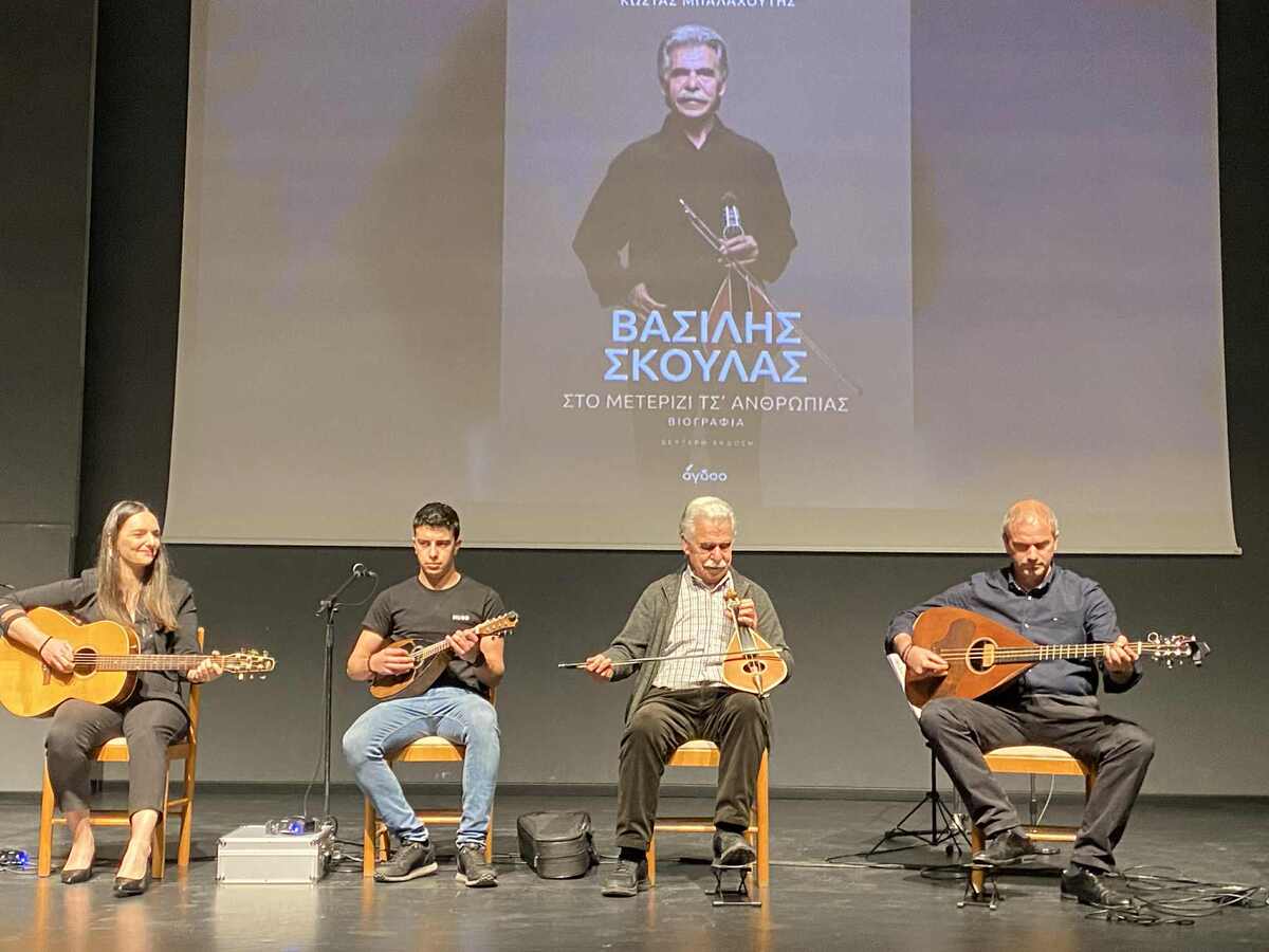 Μια βραδιά αφιερωμένη στην κρητική μουσική και παράδοση αποτέλεσε η παρουσίαση της βιογραφίας του σπουδαίου καλλιτέχνη Βασίλη Σκουλά, με τίτλο «Στο μετερίζι τσ’ ανθρωπιάς» που έγινε στην αίθουσα Μελίνα Μερκούρη του Δήμου Ιεράπετρας.