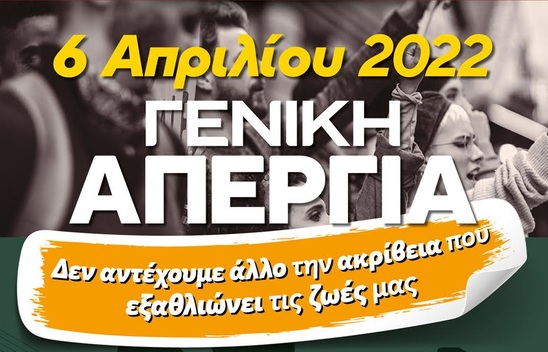 «ΟΛΟΙ ΚΑΙ ΟΛΕΣ ΣΤΗΝ ΠΑΝΕΛΛΑΔΙΚΗ ΠΑΝΕΡΓΑΤΙΚΗ ΑΠΕΡΓΙΑ ΣΤΙΣ 6 ΤΟΥ ΑΠΡΙΛΗ»