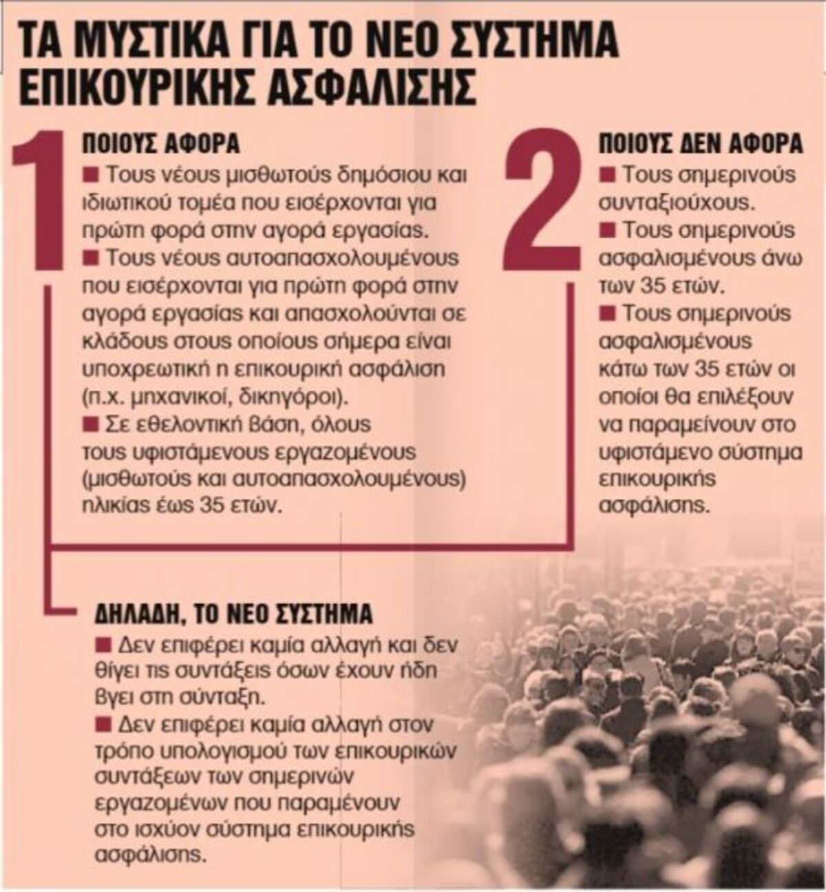 - Δεν επιφέρει καμία αλλαγή και δεν θίγει τις συντάξεις όσων έχουν ήδη βγει στη σύνταξη.