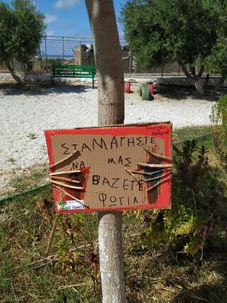 Η δράση σχεδιάστηκε στο πλαίσιο του ευρωπαϊκού προγράμματος eTwinning «eTreeHuggers:"1, 2, TREE, HUG the TREES with me"». Οι ταμπέλες ενώ αρχικά είχε σχεδιαστεί να κρεμαστούν σε δέντρα της πόλης μας , κρεμάστηκαν στην αυλή του Νηπιαγωγείου και σε δέντρα της πλατείας του χωριού ακολουθώντας το πρωτόκολλο επαναλειτουργίας των σχολικών μονάδων που απαγορεύει τις εκπαιδευτικές εκδρομές και εκδηλώσεις.