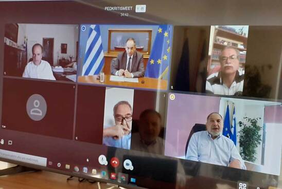 Ο Πρόεδρος κ. Γ. Κουράκης και τα μέλη της ΕΕ της ΠΕΔ Κρήτης, κκ. Γ. Μαρινάκης, Γ. Μαλανδράκης, Μ. Κοκοσάλης και Ν. Κοκκίνης συμμετείχαν σε τηλεδιάσκεψη με τον Υπουργό Ναυτιλίας και Νησιωτικής Πολιτικής κ. Γ. Πλακιωτάκη, τον Γενικό Γραμματέα Ναυτιλίας και Λιμενικών Υποδομών κ. Ε. Κυριαζόπουλο, τον Ειδικό Σύμβουλο του Υπουργού κ. Μ. Κουτουλάκη και τον Διευθυντή της Λιμενικής Αστυνομίας Πλοίαρχο κ. Χ Μαρουλάκης.