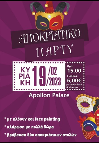 Την Κυριακή το αποκριάτικο πάρτι του Δημοτικού Σχολείου Κεντριού ΛΑΣΙΘΙ ΙΕΡΑΠΕΤΡΑ 10:20 π.μ. - Δευτέρα, 13 Φεβρουαρίου 2023 10:02 π.μ. - Δευ, 13/20/2023 ΚΕΝΤΡΙ , ΠΡΟΣΚΛΗΣΗ , ΑΠΟΚΡΙΑΤΙΚΟ ΠΑΡΤΥ, ΔΗΜΟΤΙΚΟ ΣΧΟΛΕΙΟ Κάλεσμα του Συλλόγου Γονέων Το Δημοτικό σχολείο Κεντριού κάνει αποκριάτικο πάρτι και σας καλεί να διασκεδάσετεΤην Κυριακή 19 Φεβρουαρίου στις 15.00 στο Apollon Palace. Με κλόουν και face painting, με κλήρωση για πλούσια δώρα και βράβευση δυο αποκριάτικων στολών.