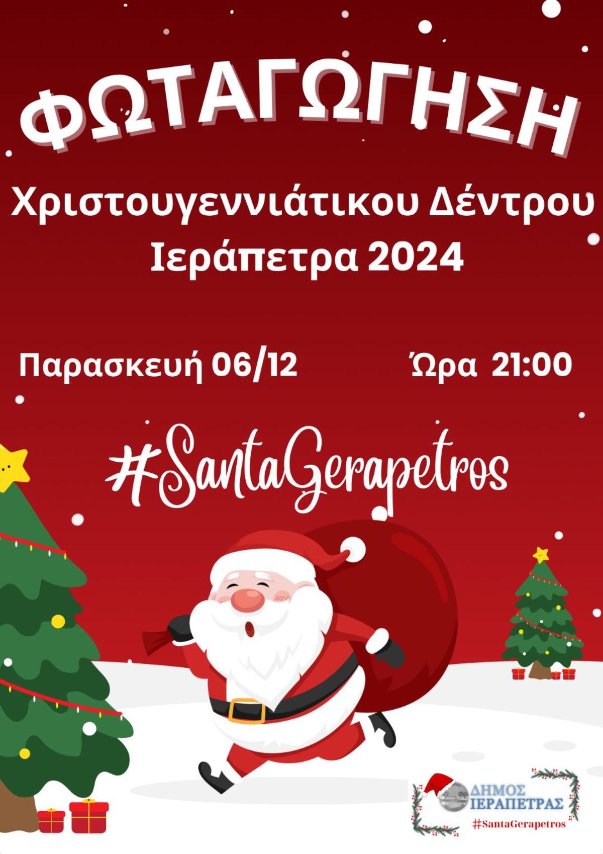 Ένα πλούσιο εορταστικό πρόγραμμα για μικρούς και μεγάλους που «αγκαλιάζει» την περίοδο των Χριστουγέννων και της Πρωτοχρονιάς σχεδίασε ο Δήμος Ιεράπετρας.