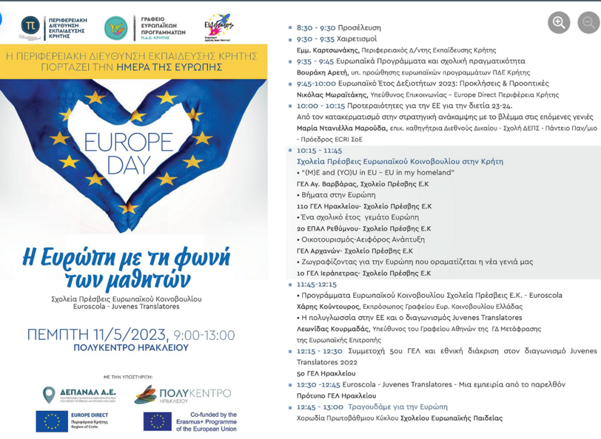 Το 1ο ΓΕΛ Ιεράπετρας συμμετείχε στην εκδήλωση "Η Ευρώπη με τη φωνή των μαθητών" που πραγματοποιήθηκε την Πέμπτη 11 Μαϊου 2023 στο Πολύκεντρο Ηρακλείου.