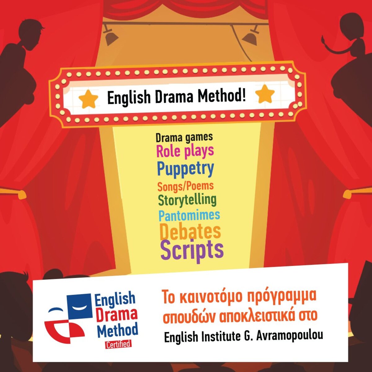 Το βραβευμένο πρόγραμμα English Drama Method έφτασε στο English Institute G. Avramopoulou ΛΑΣΙΘΙ ΙΕΡΑΠΕΤΡΑ 1:02 μ.μ. - Τρίτη, 22 Μαρτίου 2022 01:03 μ.μ. - Τρί, 22/02/2022 ENGLISH INSTITUTE G. AVRAMOPOULOU, ENGLISH DRAMA METHOD Το καινοτόμο πρόγραμμα σπουδών αποκλειστικά στο English Institute G. Avramopoulou