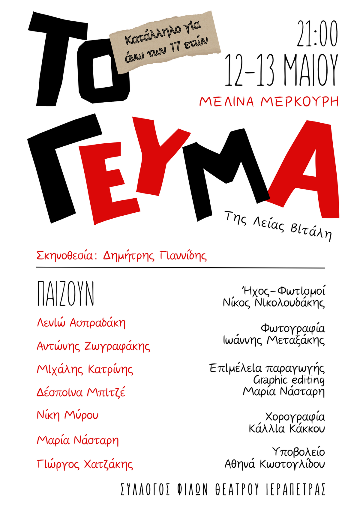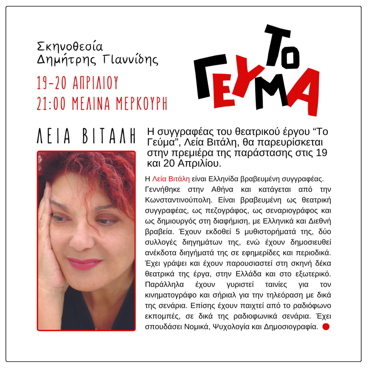 12 & 13 Μαΐου στις 21:00 στο θέατρο "Μελίνα Μερκούρη"