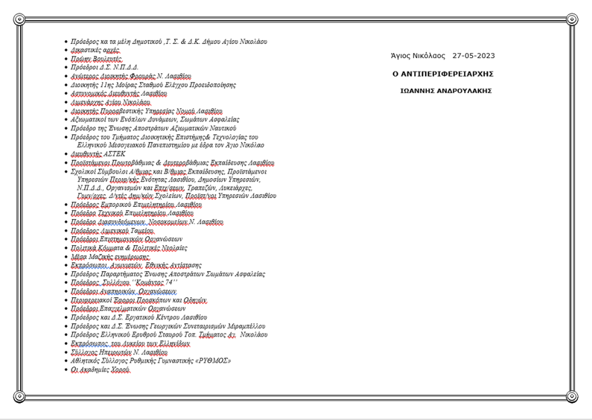 Το κάλεσμα από την Αντιπεριφέρεια Λασιθίου