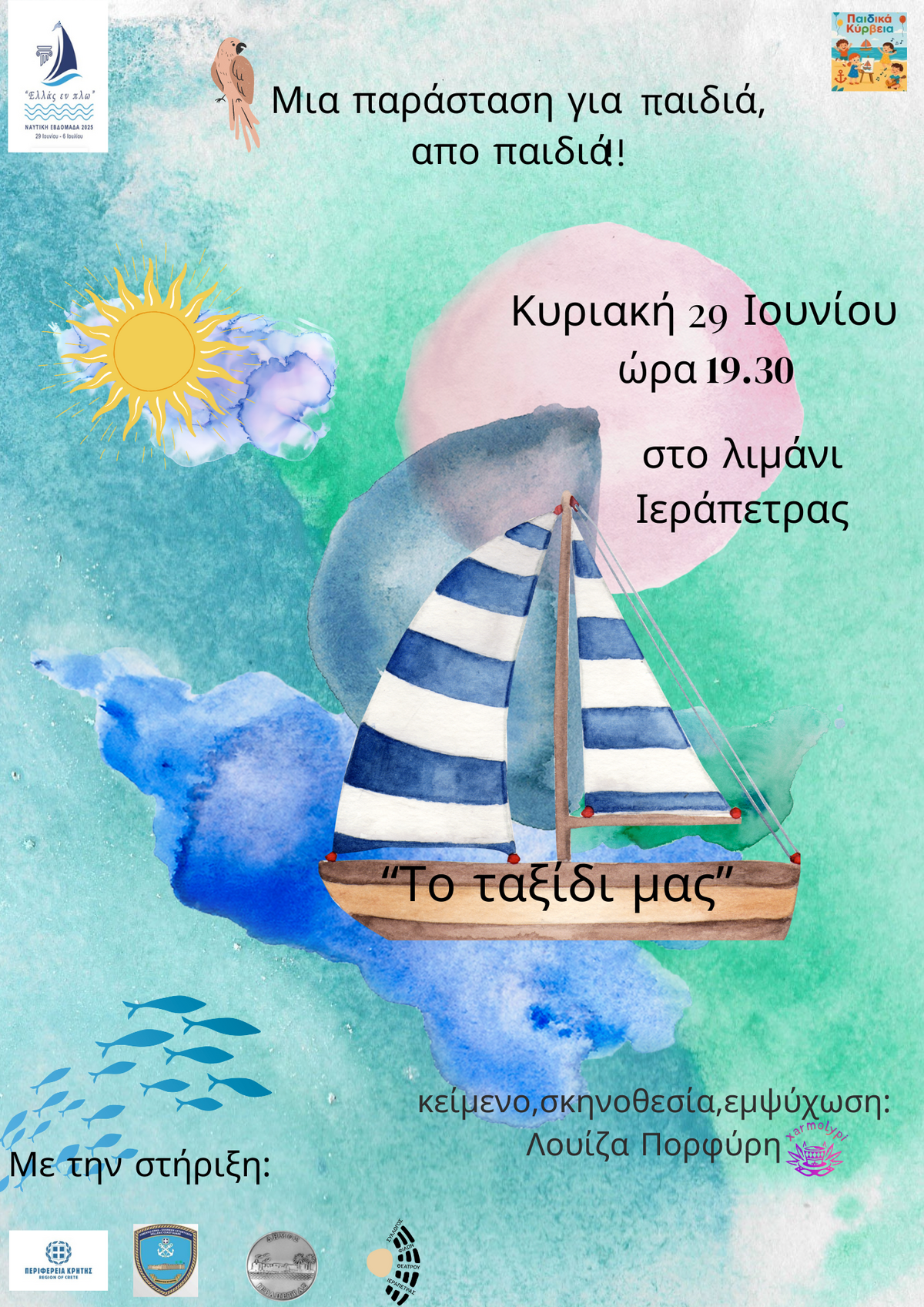 Ένα πρωτότυπο θεατρικό δρώμενο φτιαγμένο με απλά υλικά και πλούσια φαντασία στο Λιμάνι της Ιεράπετρας την Κυριακή 29 Ιουνίου 2025 στις 19:30