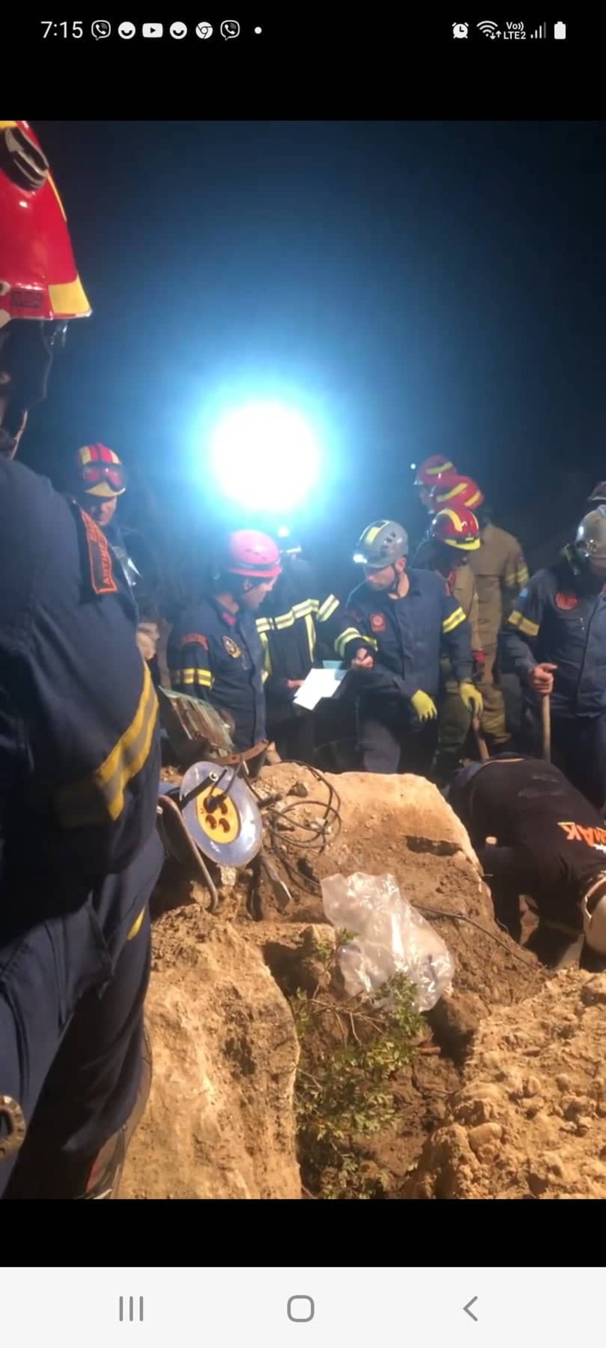 Ο βράχος προκάλεσε την πτώση της ταράτσας του ενοικιαζόμενου διαμερίσματος. Η άτυχη γυναίκα καταπλακώθηκε στα συντρίμμια του σπιτιού. Εντοπίστηκε περίπου μιάμισι ώρα αργότερα και μετά από έρευνες αρχικά των ανδρών της Πυροσβεστικής Υπηρεσίας Ιεράπετρας και στη συνέχεια και με τη συνδρομή των συναδέλφων τους της Σητείας και του Αγίου Νικολάου, αλλά και κλιμακίου της 3ης ΕΜΑΚ. Κινήθηκαν με βάση τις μαρτυρίες του συζύγου και του παιδιού που δεν είχαν προλάβει να καταλάβουν τι τους είχε συμβεί. Στο σημείο συνολικά επιχείρησαν 50 άνδρες και 20 οχήματα των Πυροσβεστικών Υπηρεσιών καθώς και το ΕΚΑΒ και εθελοντές. Στο σημείο έσπευσε και ο Γενικός Περιφερειακός Διοικητής των Πυροσβεστικών Δυνάμεων Κρήτης Γιώργος Τσικαλάς που συντόνιζε την επιχείρηση διάσωσης.