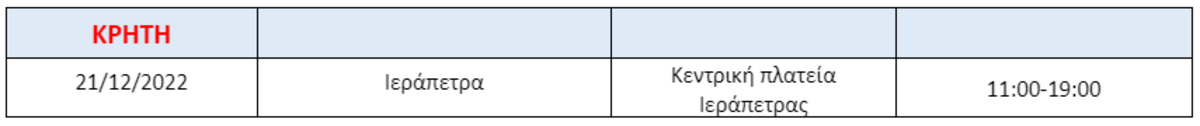 Στην Κεντρική πλατεία σήμερα Τετάρτη 11.00-19.00
